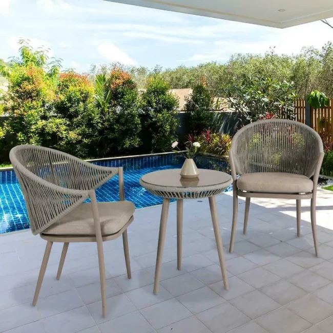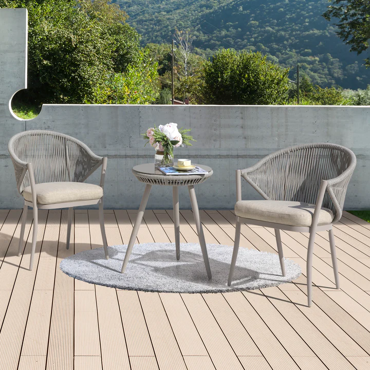 Elevate your outdoor space with the Detect Outdoor Patio Seating Set, a 3-piece set designed for both comfort and durability. This set includes 2 ergonomically crafted chairs with a breathable braided & rope weave and a matching sturdy table, all in a versatile grey finish that complements any patio, balcony, or garden décor. Made from high-quality, weather-resistant materials, it ensures long-lasting performance with minimal maintenance. Whether you’re sipping your morning coffee or unwinding after a long day, this set provides the perfect balance of style, relaxation, and functionality. Ideal for modern outdoor living!
