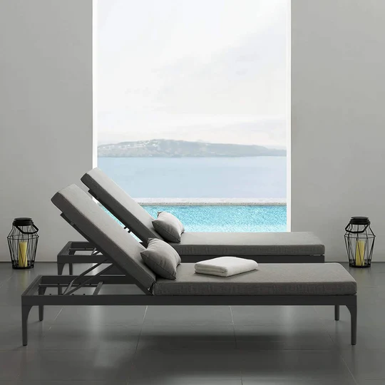 The Disla Outdoor Swimming Poolside Lounger (Black) – Set of 2 combines modern elegance with superior comfort, perfect for any poolside or patio.