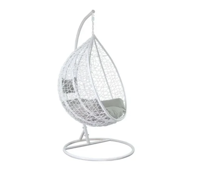 Brighten up your space with the serene charm of our White Egg-Shaped Swing Chair, crafted from durable powder-coated iron for long-lasting beauty and strength. Its sleek, minimal silhouette and crisp white finish bring a touch of modern sophistication, while the cocoon-like shape creates the perfect personal retreat.