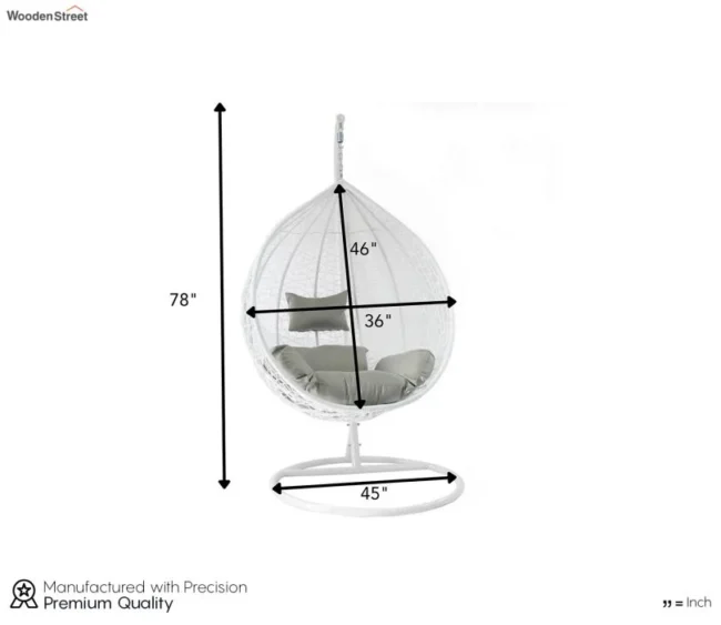 Egg shaped Powder coated iron Swing Chair ( White )