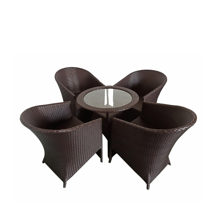 EKRA ME FURNITURE 4 SEATER OUTDOOR SAETING CHIAR AND TABLE SET GARDEN PATIO COFFEE TABLE SET OUTDOOR BALCONY WICKER FURNITURE DARK BROWN 4 CHIAR 1 TABLE SET