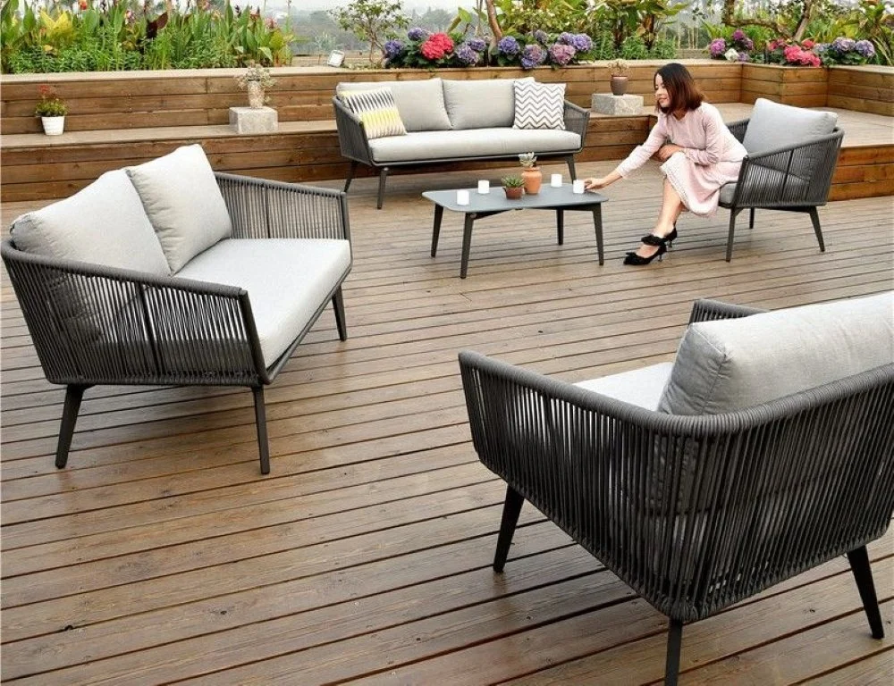 Slava Outdoor Sofa Set 3 Seater , 2 Single seater and 1 Center Table (Grey) Braided & Rope
