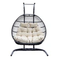 The Tonia Double Seater Hanging Swing offers a stylish and cozy retreat for two. Designed with a durable stand, braided rope detailing, and a sleek black finish, it’s perfect for balconies, gardens, and patios.