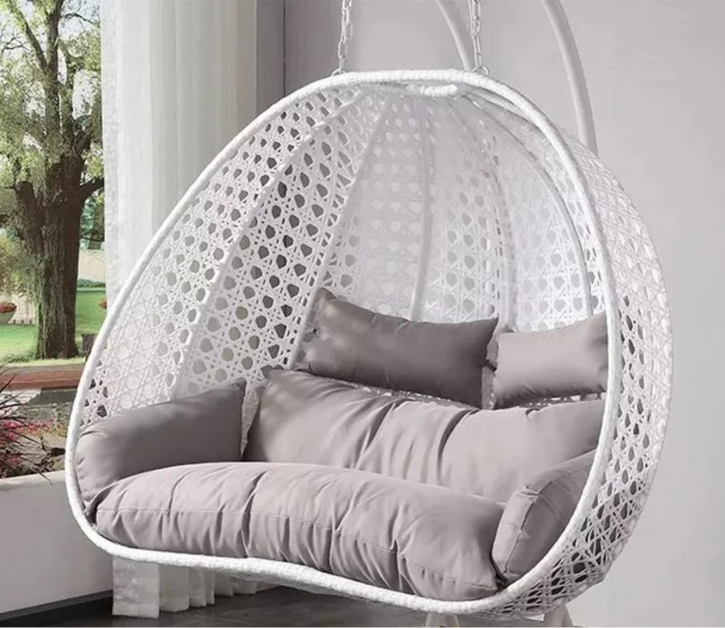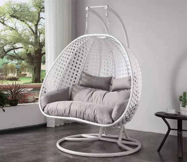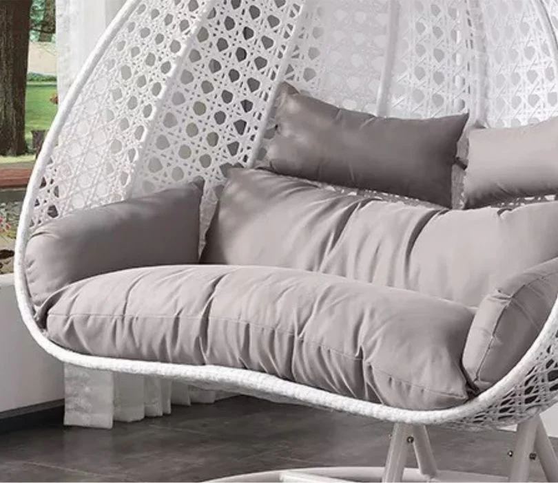 White Metal Swing Chair with Grey Cushion