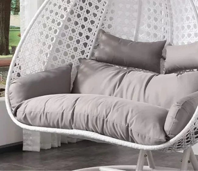 Add a sleek and soothing touch to your space with our White Metal Swing Chair, paired with a plush grey cushion for the perfect blend of minimal style and cozy comfort. Whether placed on a balcony, in a sunroom, or under a shaded patio, this swing chair turns any corner into a peaceful retreat.